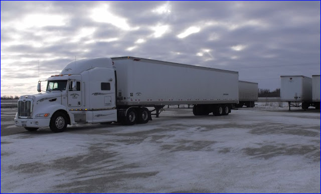 ____Day 6: “Port of Entry” is another name for a glorified scale-house and is found at the border of all the states I cross on my way north. It will be a cold day in Hell when these places are closed and don’t call a Canadian truck into the office for a document inspection. I plan my fuel-stops after the scales in Colorado and Wyoming, but running through a blizzard, south of Denver, plasters the rig with ice, snow and more weight. I get a “Watch your weight” warning at the Cheyenne scale but no ticket. Wyoming’s Interstate 25 is a mixture of shiny hard-packed snow and sheets of ice; four and a half hours of ups and downs which leaves me with severe aching in my neck and shoulder muscles. Caused by the tension of letting 80,000 lbs of machinery roll down-hill at 75 mph on a thin white sheet of glass.